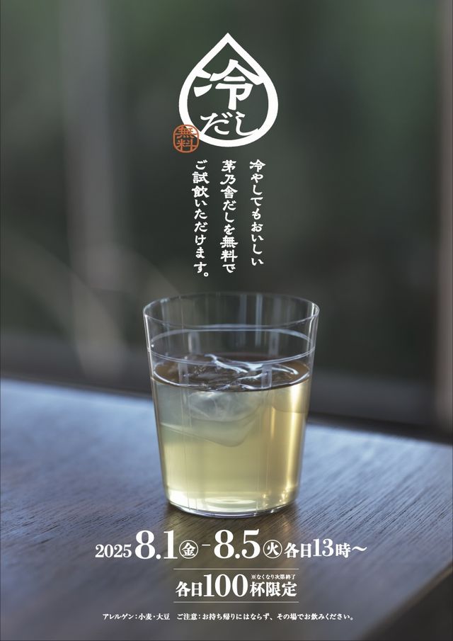 ■提供内容:茅乃舎だしを煮出して冷やしただしを無料で試飲できます。