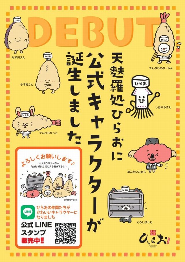2025年8月4日(月)天麩羅処ひらおの公式キャラクターが誕生し、「天麩羅処ひらお公式LINEスタンプ」として販売を開始しました。