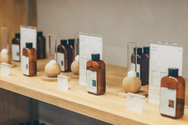 店内では、menooの全ライン(MENOO|自然由来100%、menoo Classic、menoo Limited)の香りを実際に体験できます。調香師が創り上げた立体的な香りの世界を、時間をかけてじっくりとお楽しみください。