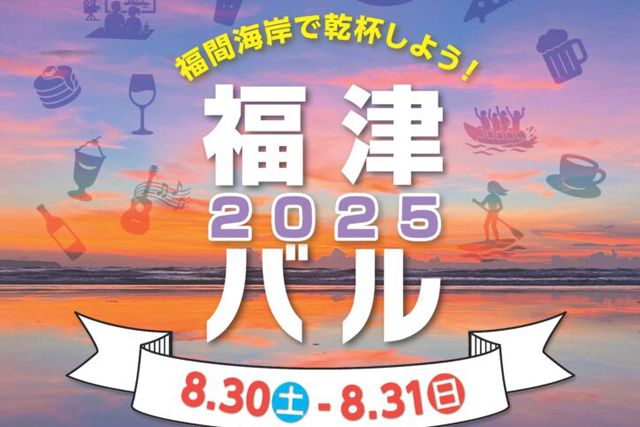 夏の終わりを盛り上げるビーチイベント「福津バル2025」。海が見える人気のカフェやレストラン、SUPやバナナボートといったマリンアクティビティなど、福間海岸一帯の約12店をバルチケット片手にホッピング。
