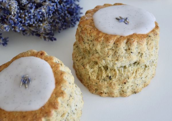 エムベイクハウスの人気ドリンク「ロンドンフォグラテ」をスコーンで再現。贅沢に使用したアールグレイの生地に、フランス産ラベンダーのほのかな香りと、芳醇なバニラビーンズアイシングがアクセントを添えています。