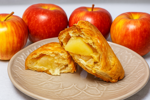 四つ切りの大きなりんごを爽やかなりんごのクリームと合わせて、パイシートに包み、オリゴ糖を塗りながら、自家製オーブンで焼き上げました。シナモン等は使用せずりんごを楽しめるアップルパイです。