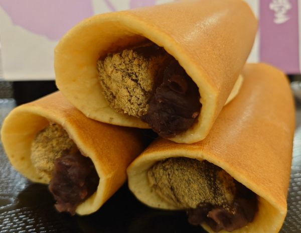「あんまき」ふわふわモチモチの生地でトロトロのわらび餅とあんをくるみました。