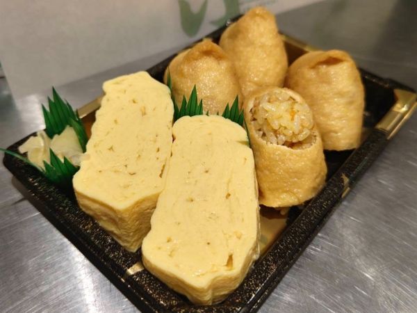 ほんのりとカレーの風味をつけたいなり寿司とふっくら柔らかく仕上げた京だし巻きのお弁当です。