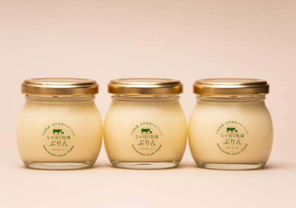 牧場の牛乳と放し飼いの健やかな卵を使いひとつひとつ手作りしています。1つ500円(税込)のカスタードぷりんを3つセット1,300円(税込)で数量限定販売します。