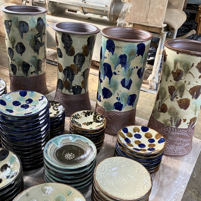 近年人気の高まりと共に入手困難となっている石倉一人氏(壺屋焼/ 南城市)のやちむんも並びます。