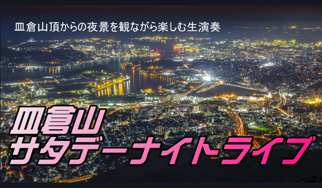新日本三大夜景と恋人の聖地に選ばれた「皿倉山頂からの夜景」を観ながら楽しむ生演奏。※屋内のため、雨天でも開催