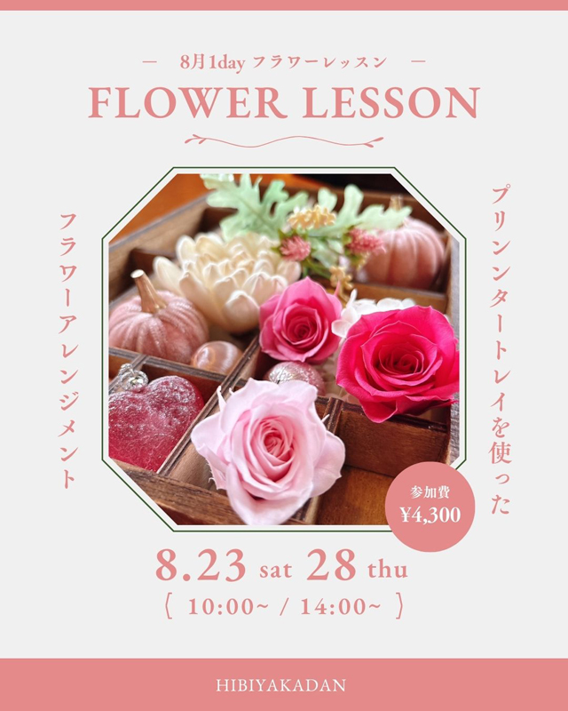 2025年8月23日(土)、8月28日(木)に福岡市中央区西中洲にある重要文化財、旧福岡県公会堂貴賓館(福岡市中央区西中洲6番29号)にて、「1Dayフラワーレッスン」を開催します。