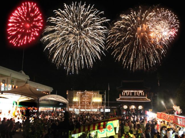 約700年の歴史を持つといわれる、真夏の夜の火祭り。帆立貝に菜種油を注ぎ込んで灯心を入れた1,000個の燈明で、楼門や鳥居、日の出、帆かけ船などの形を作り、豊作や家内安全を祈ります。20:00から花火の打ち上げも行われます。