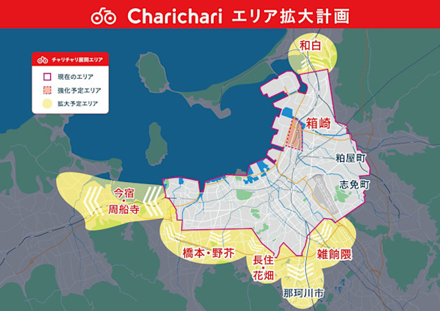 2025年6月に那珂川市へエリア拡大を行いましたが、今後6年で今宿・周船寺、雑餉隈、長住・花畑、和白へ拡大し、福岡市を広域で展開すると発表しました。