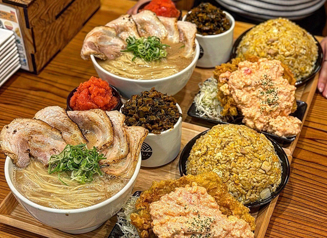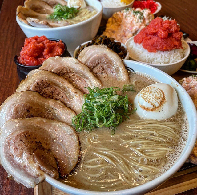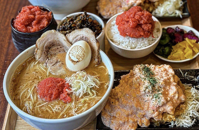 「豚骨らぁめん いちむじん」榎田本店、呉服町店に次ぐ3店舗目となります。豚骨スープに、明太子の味付けに使う特製ソースを加え、魚介の香りと旨みを重ねた、ピリ辛仕立ての一杯を提供。