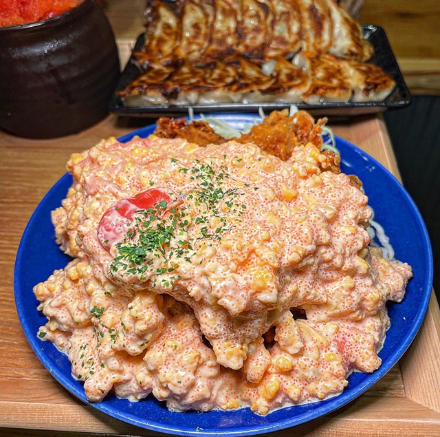 人気サイドメニュー「明太タルタルチキン南蛮」も大好評。宗像の老舗「海千」の明太子を贅沢に使った特製明太タルタルソースが決め手。ぷちぷちの明太子と炒り卵のまろやかさがジューシーなチキン南蛮と絶妙にマッチ!ラーメンとの相性も抜群です。