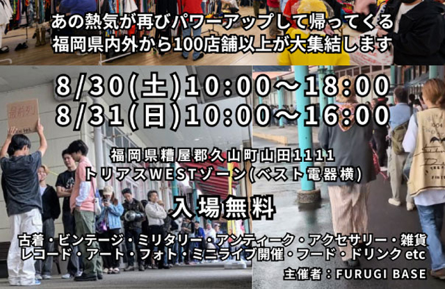 2025年8月30日(土)10:00~18:00、8月31日(日)10:00~16:00、トリアス久山 WESTゾーン(糟屋郡久山町山田1111 ベスト電器横)にて「FUKUOKA VINTAGE MARKET」が開催されます。