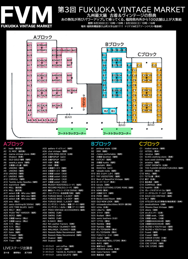 福岡県内のショップを中心に九州全域、中国、四国、関西、東海などから100店舗以上のショップがトリアスに!今回は古着やヴィンテージ物だけではなくアクセサリー類、アンティークや雑貨などのお店も出店。