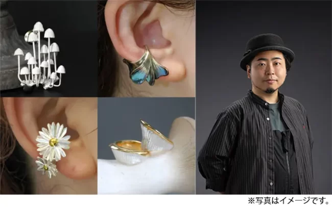 『キノコや粘菌など身近な自然の造形美や生態のおもしろさをモチーフにしたシルバーアクセサリーです。同定できるレベルでの作り込みにこだわりつつ、毎日使えるジュエリーに仕立てています。』