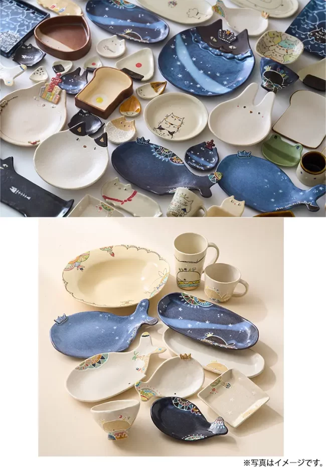 『夫婦で手づくり陶器の企画、制作、販売をしています。大切な人や家族との間に笑顔がふえる…、いつもの食卓が楽しくなる…、そんな思いで作陶しています。食パン、おにぎり、ネコなど身近なものをモチーフに、ひとつひとつ手作りの器や箸置きから、あなただけのお気に入りを見つけてください。』