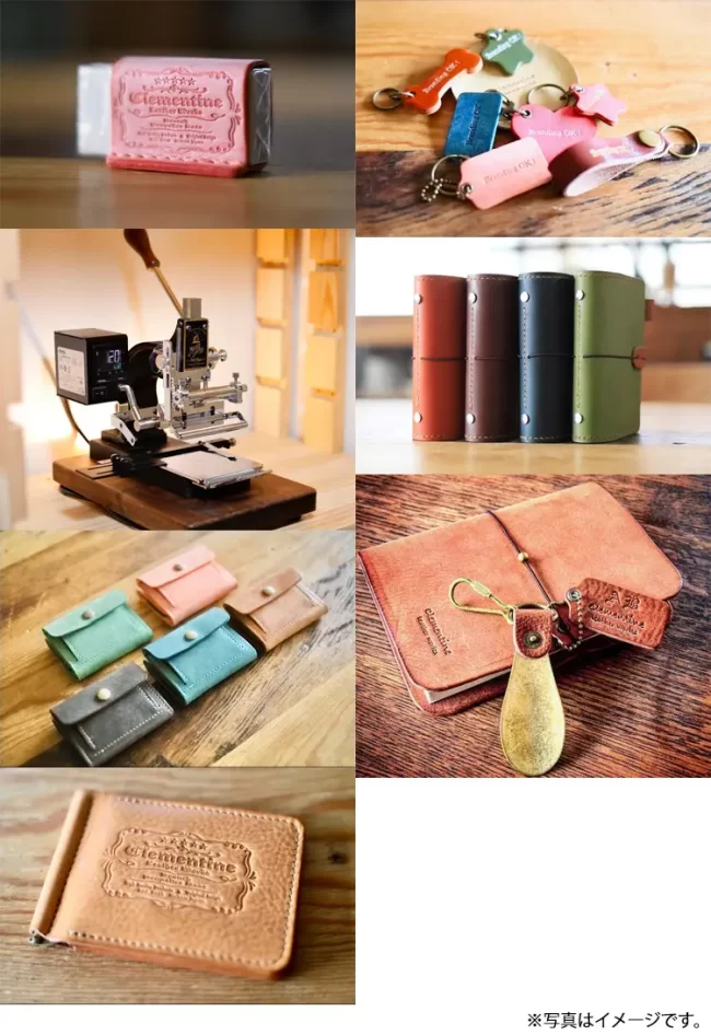 『心を込めて手作りした革小物たちを販売しています。ナチュラルな風合いを持った、ややボリュームのある革を厳選し、太めの糸のステッチが生きる、素朴で使い勝手の良いデザインが持ち味です。今回は会場に焼印機を持ち込んでキーホルダーなどにお名前などを焼印いたします。』