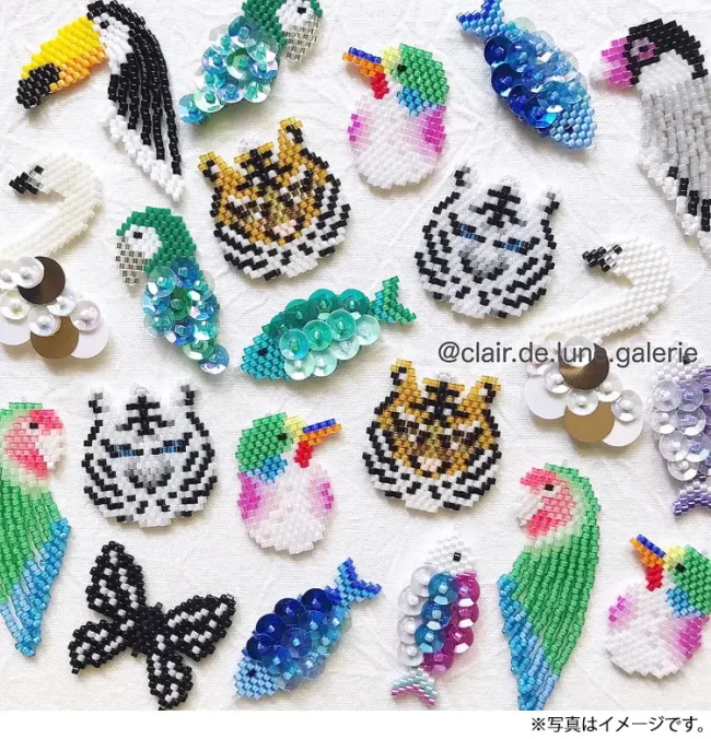 『おしゃれで個性的!カラフルなビーズアクセサリーで日常に彩りを!をモットーにしています。ビーズを1粒1粒、糸で編んで作ったオリジナルデザインの生き物や食べ物をアクセサリーにしています。人気の鳥シリーズは30種類を超えました。』
