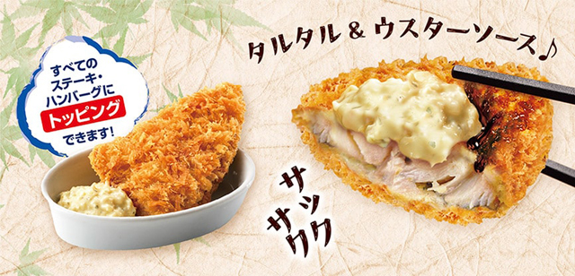 また、とろあじフライはすべてのステーキ・ハンバーグに1枚¥390(税込¥429)でトッピングできます。