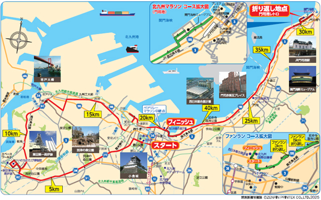 20.7kmマラソン:北九州市役所前をスタートし、北九州国際会議場前をフィニッシュとするコース。