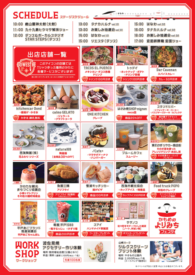 このイベントは、同⽇にJR九州が開催する、⻄九州新幹線開業3周年記念プロジェクト「GO WEST3」に合わせて開催するもので、ステージイベントでは、地元団体によるパフォーマンスやスペシャルゲストのはなわさん、タナカハルナさんによるライブなどを実施予定。