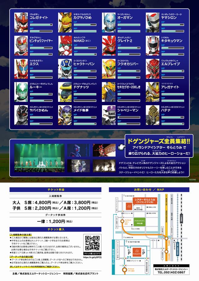 ヒーローたちを大きな声で応援しよう!ショーの終演後にはドゲンジャーズ全員とのグータッチ会も開催。チケットはチケットペイにて好評発売中!