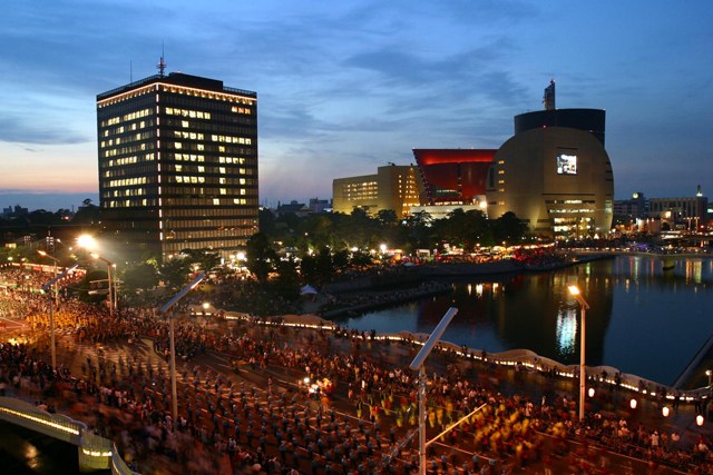 1973年に始まった「まつり北九州」が1988年の北九州市制25周年を機に「わっしょい百万夏まつり」として引き継がれ、市民が心を一つに合わせて楽しめる祭りとして発展。例年150万を超える人々が訪れる一大イベントです。