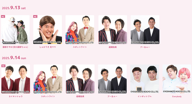 さらに盛り上げる為のステージでは、よしもとの有名お笑い芸人達が登場し、出会いを応援します。