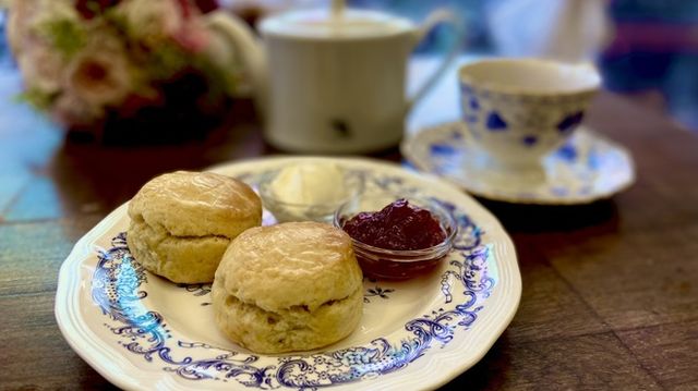 オススメはスコーンティーフリーセット。沢山の紅茶の種類を飲みながらスコーンをお楽しみください。スコーンは全てお店の手作りです。クロテッドクリームとイチゴジャムをたっぷりと付けて召し上がりください。