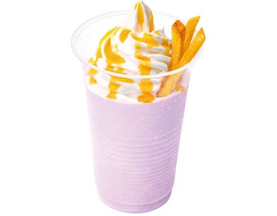 「紫芋ぱふぇシェーキ」は、程よい甘みが特長の紫芋シロップを使用したシェーキに、口当たりなめらかなホイップクリーム、種子島産安納芋を使用した濃厚な甘みが特長の芋ソース、サクサク食感の芋けんぴをトッピングした商品です。お芋の味わいを存分に楽しめるパフェのようなシェーキに仕上げました。
