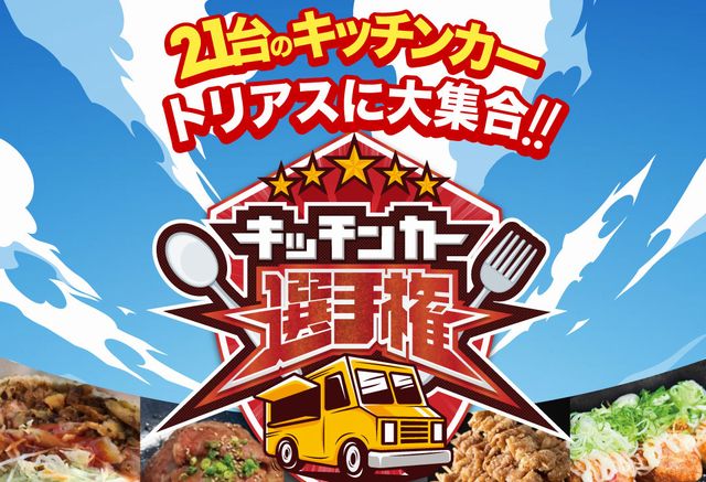 全国から集まった選りすぐりの計21台のキッチンカーがトリアスに大集合。あなたの投票でグランプリが決まる!気になるキッチンカーの商品を食べ歩いて、一番美味しかったキッチンカーに投票しよう!
