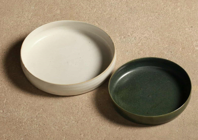 今回の個展では、絵唐津・粉引・三島・焼きしめといった隆太窯の歴史の中で⾧く制作してきたうつわに加え、中里さんが新たに取り組んでいる白釉・緑釉・青白磁・白磁・飛鉋などのうつわが展示され、陶磁器の多様性と奥の深さを存分に堪能できる空間が広がります。