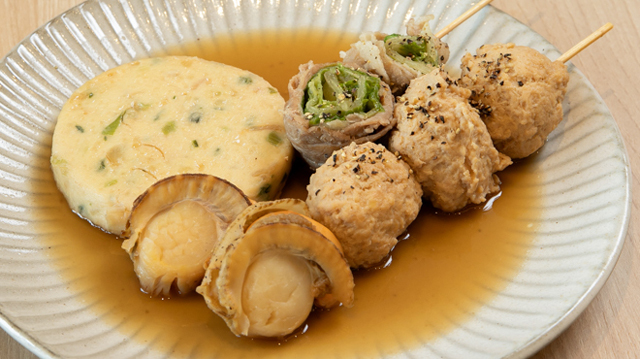 関西風の出汁をベースにブレンドし、旬の素材を使って丁寧に仕込んだ自慢のおでん。旨みが染み込んだ温かな味わいは日本酒と相性抜群です!