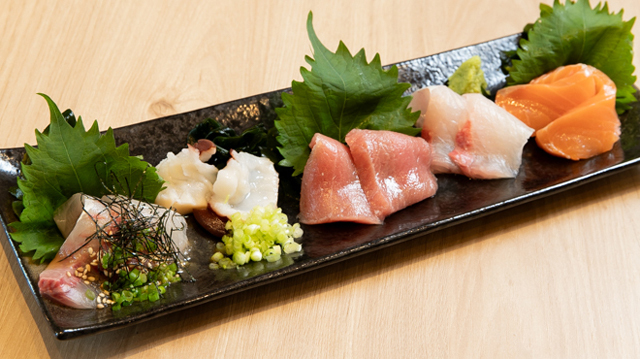 新鮮な魚を贅沢に使用した刺身盛り合わせ。市場直送の本マグロの中トロもおすすめ。