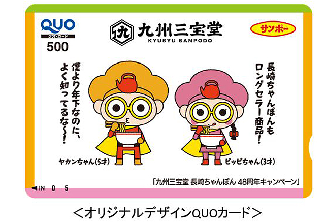 本企画は「オリジナルQUOカード(500円分)」が合計480名に当たります。キャンペーン情報が印刷されている「九州三宝堂 長崎ちゃんぽん」を購入し、フタを開けて中にQUOカードが同封されていると当たりとなります。