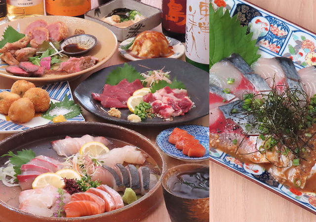 厳選された新鮮な食材を使ったお刺身各種を用意。当日おススメを厳選した盛合わせも用意。また、自慢の肉料理も豊富に用意。