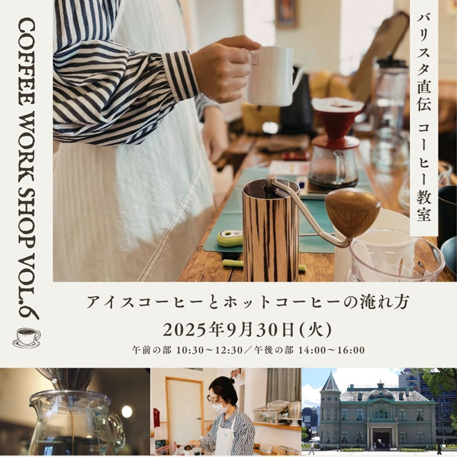 2025年9月30日(火)福岡市中央区西中洲にある重要文化財、旧福岡県公会堂貴賓館(福岡市中央区西中洲6番29号)にて「バリスタ直伝!コーヒー教室~アイスコーヒーとホットコーヒーの淹れ方~」講座とワークショップ(予約制)を開催します。