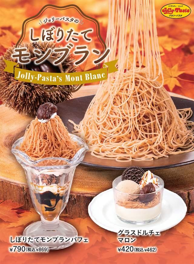 株式会社ジョリーパスタが展開するパスタ専門店「ジョリーパスタ」は2025年9月11日(木)に「マロンフェア」としてドルチェ3品を発売します。