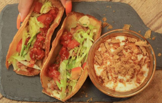 沖縄のモチモチ、パリッの皮のタコスに、野菜とお肉詰め込んで、ソースをかければ止まらない美味しさ!福岡でしか味わえないシンメイの新しい組み合わせをお楽しみください。