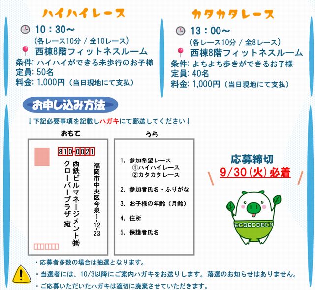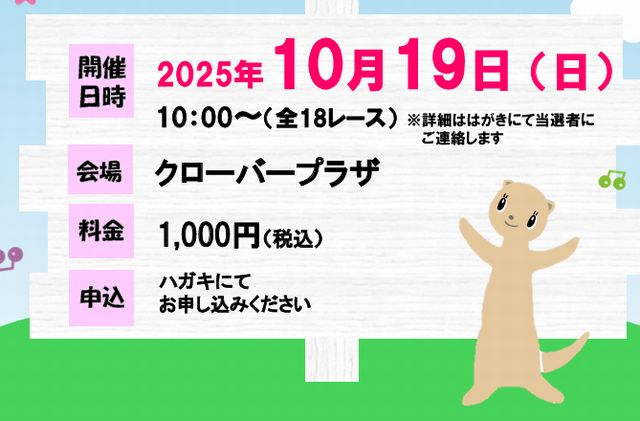 レース参加希望の方は、必要事項を「ハガキ」に記入し応募ください。