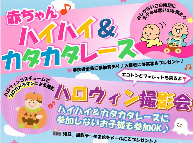 さらに、ハロウィン撮影会も同時開催!かわいい仮装をプロのカメラマンが撮影します。後日、撮影データ2枚をメールにてプレゼント。撮影会はどなたでも参加OKです。
