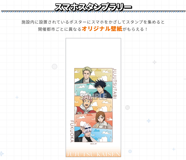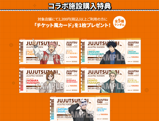 オリジナルグッズ、スタンプラリーやコラボドリンクなどイベントが盛りだくさん!虎杖・伏黒・釘崎・七海・五条と一緒にじゅじゅつ旅を楽しもう!
