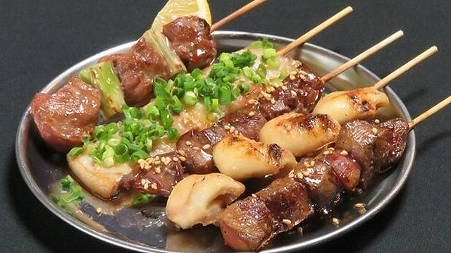 串物の定番バラは勿論、カシラ(こめかみ)やしろ(小腸)など珍しい部位や、老若男女問わず大人気のねぎ塩タンまで幅広くホルモン串を用意。