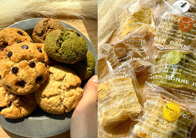 プレーンから季節限定まで、常時20種類以上のフレーバーを用意。さらに、八女抹茶やほうじ茶を使った米粉スコーンや米粉シフォンケーキなど、グルテンフリーのスイーツも登場。