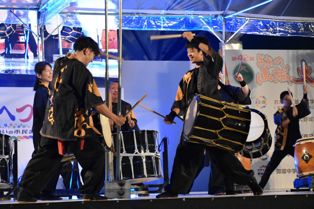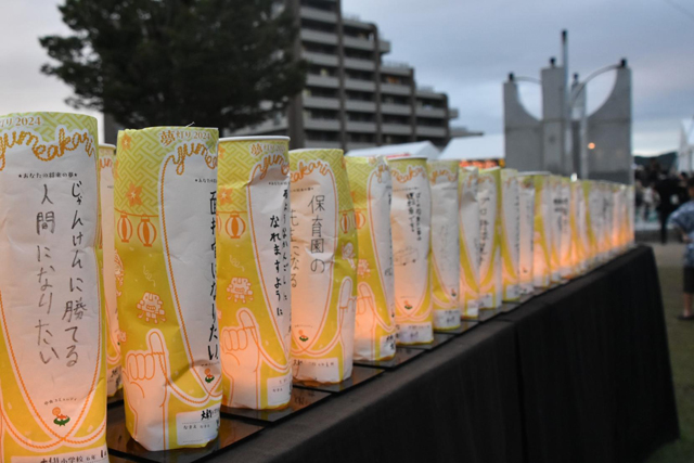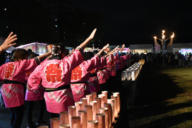まつり開催中は四王寺山に「大」の文字が灯り、まつり両日の夜は市内小学6年生の夢を描いた「夢灯り(灯籠)」に火が灯され、会場は幻想的な光景に包まれます。