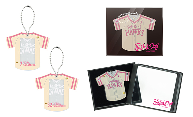 選手着用ピンクリボンユニフォーム入りアクリルキーチェーン