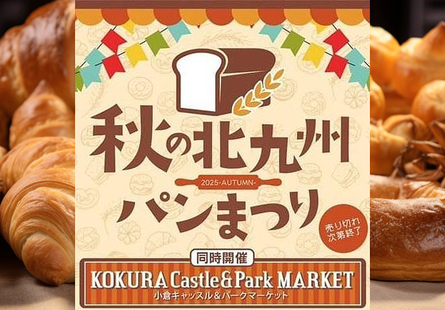 2025年10月18日(土)~10月19日(日)10:00~15:00(パンまつりは11:00~)、勝山公園大芝生広場(北九州市小倉北区城内3)で「秋の北九州パンまつり・小倉キャッスル&パークマーケット」が開催されます!