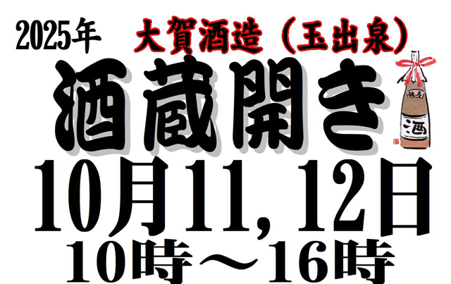 2025年10月11日(土)~10月12日(日)10:00~16:00、大賀酒造(筑紫野市二日市中央4-9-1)にて「秋の酒蔵開き」が開催されます。