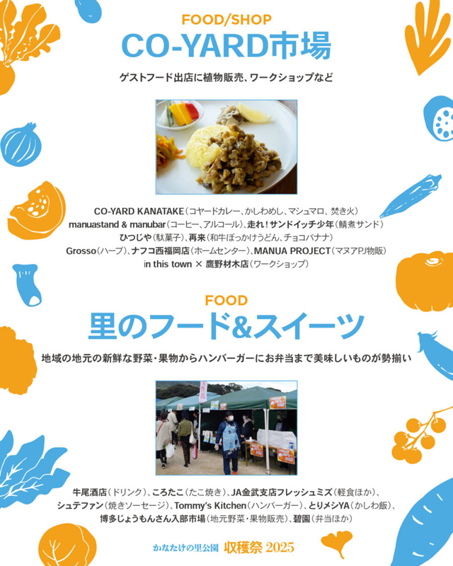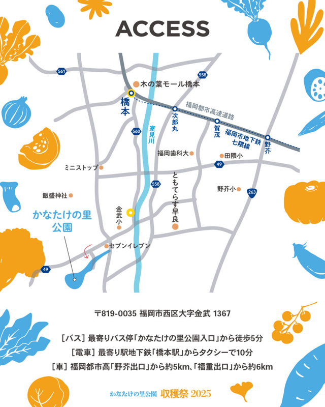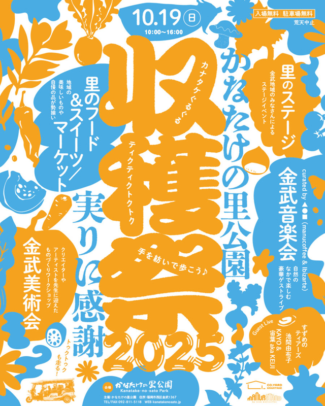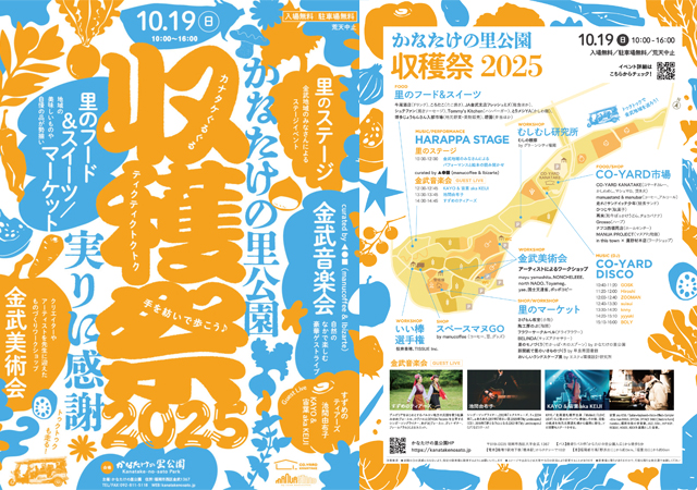 2025年10月19日(日)10:00~16:00、かなたけの里公園(福岡市西区金武1367)にて「かなたけの里公園 収穫祭 2025」が開催されます。入場無料・駐車場無料・荒天中止。