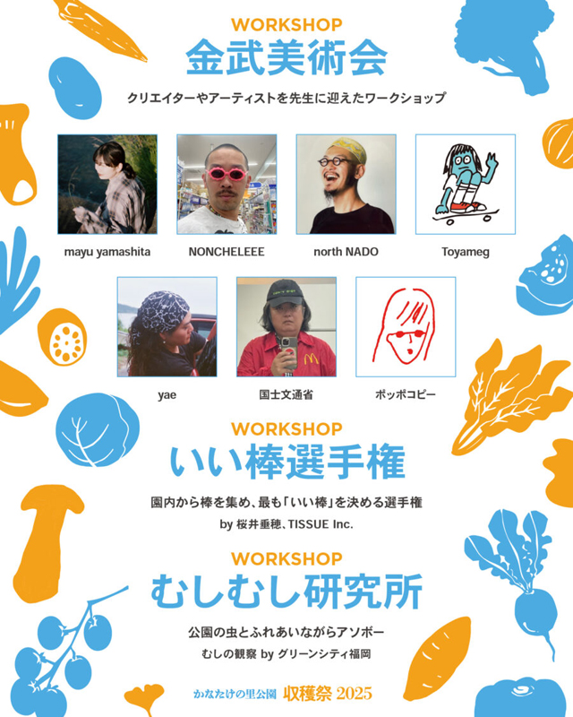 ほかにも福岡を拠点に各地で活躍するクリエイターやアーティストを先生に迎えたワークショップ企画「金武美術会」や、地域の美味しいものや自慢の品が勢揃いする「里のフード&スイーツ/マーケット」。